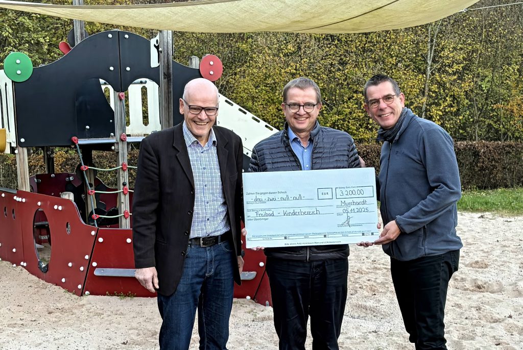 Murrhardt, den 05.11.2025 – Eine großzügige Spende in Höhe von 3.200 Euro kommt dem Kinderbereich des Murrhardter Freibads zugute. Anlass ist der Eintritt von Ronald Pfitzer in den Ruhestand nach über 30 Jahren Tätigkeit bei den Stadtwerken Schwäbisch Hall, davon 13 Jahre als Geschäftsführer.